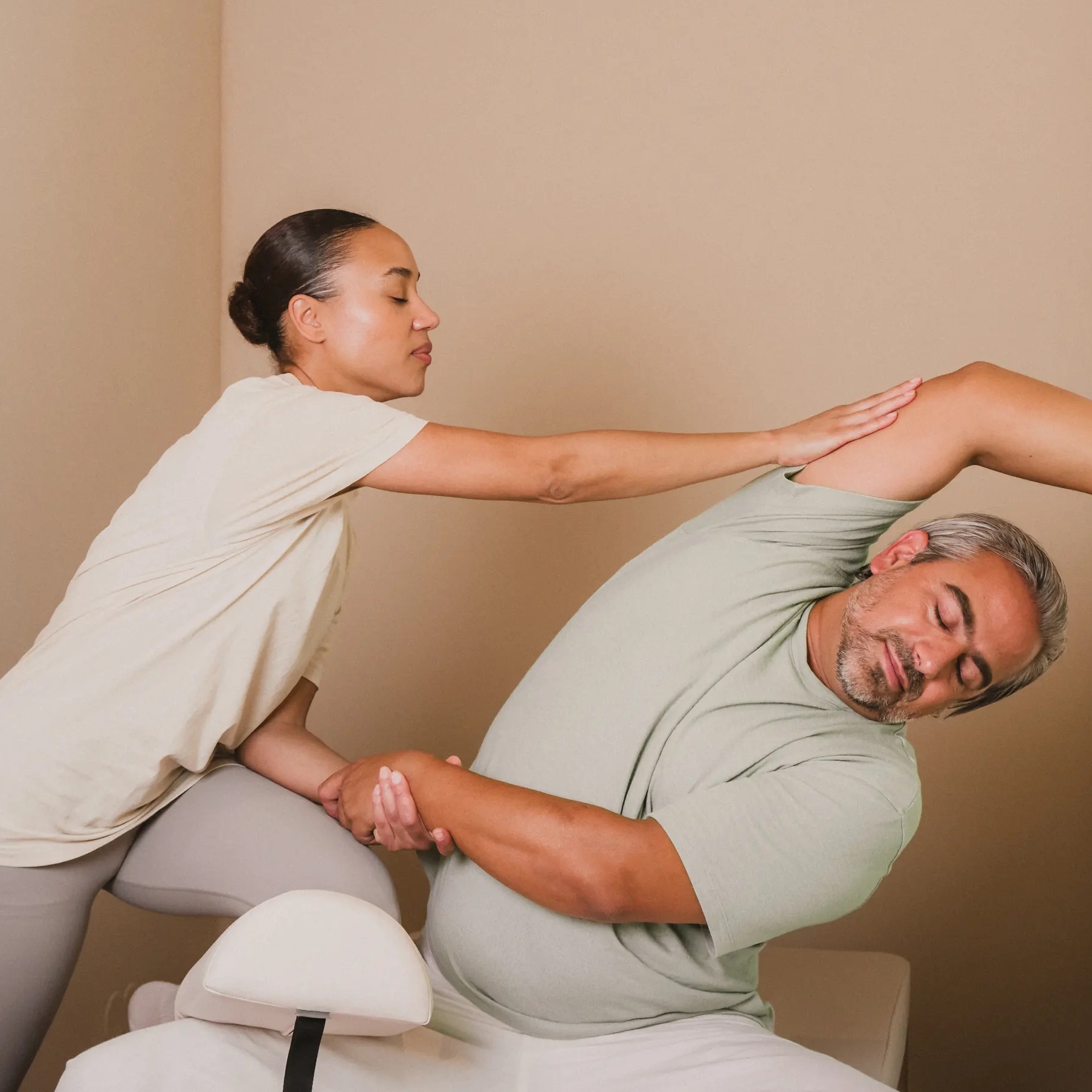 Assisted Stretching ist 1:1 Arbeit. Ein Expert dehnt und streckt dich – tiefer, als du selbst kommst. Mit Technik, die sitzt. Mit Händen, die wissen, wie weit dein Körper gehen kann. Keine Gruppe, kein Programm für alle.