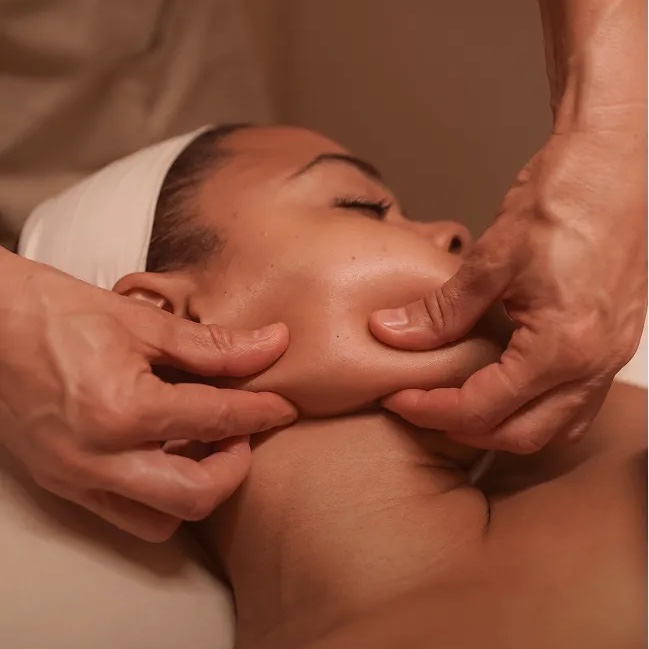 Unsere Signature Lymphatic Face Glow kombiniert entstauende Massagegriffe mit Elementen der brasilianischen Lymphdrainage. Mit rhythmischen, tiefen Streichungen wird der Lymphfluss angeregt, die Gesichtsmuskulatur gelöst und dein natürlicher Glow von innen aktiviert.